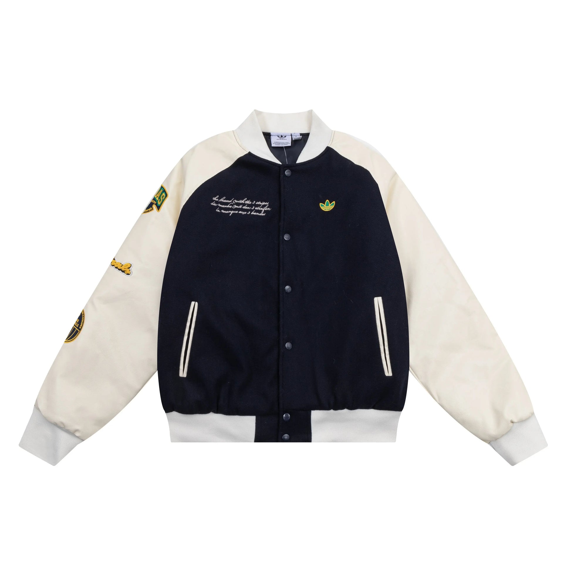 Ensemble streetwear complet Adidas comprenant une veste teddy varsity et un pantalon de survêtement assorti. Ce pack iconique allie style rétro et confort urbain pour un look streetwear coordonné.